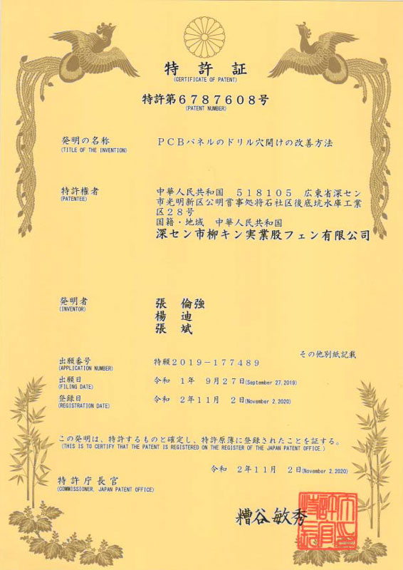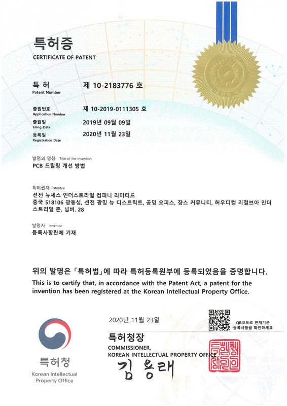 | Research and development of high-precision controlled deep back drill single-sided aluminum foil entry board | Shenzhen International Tendering Co., Ltd. Shenzhen Science and Technology Intermediary Association | 7/4/2019 | The product has advanced technology, intellectual property rights, and its technical performance has reached the domestic leading level, which can replace similar imported products. |